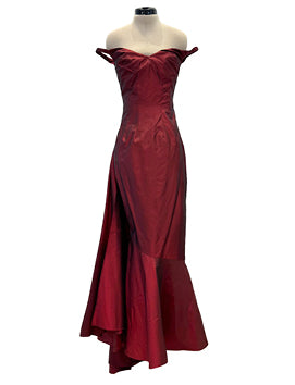 - The dress curves in for the waist and back out over the hips. This particular dress is a larger size so does not fit my dress form as form fitting as it will on an actual body in the correct size. Once on the correct size person it will fit more like the reference photos.