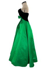 - The dress is strapless and the top portion of the dress is made from an inky black velvet. It is dramatically shaped at the front with wired peaks and a V plunge at the front.