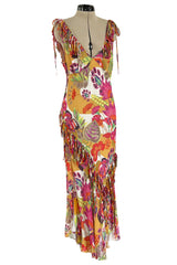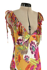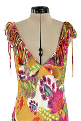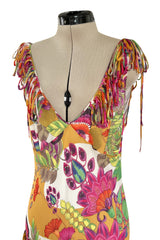 Gorgeous Spring 2005 Christian Dior by John Galliano Silk Print Dress w Flowered Edge Scarf