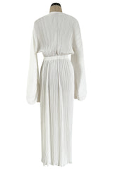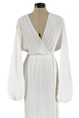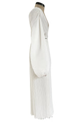 Incredible Spring 1978 Halston Plunged & Pleated White Wrap Silk Chiffon Runway Dress