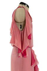 Phenomenal Spring 2001 Chanel by Karl Lagerfeld Dusty Pinks Silk Chiffon Runway Dress