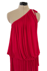 Spring 1982 Yves Saint Laurent Runway & Ad Campaign Red Jersey One Shoulder Dress