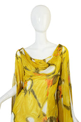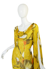1960s Dramatic Silk Scarf Arm Lilli Diamond Floral Dress