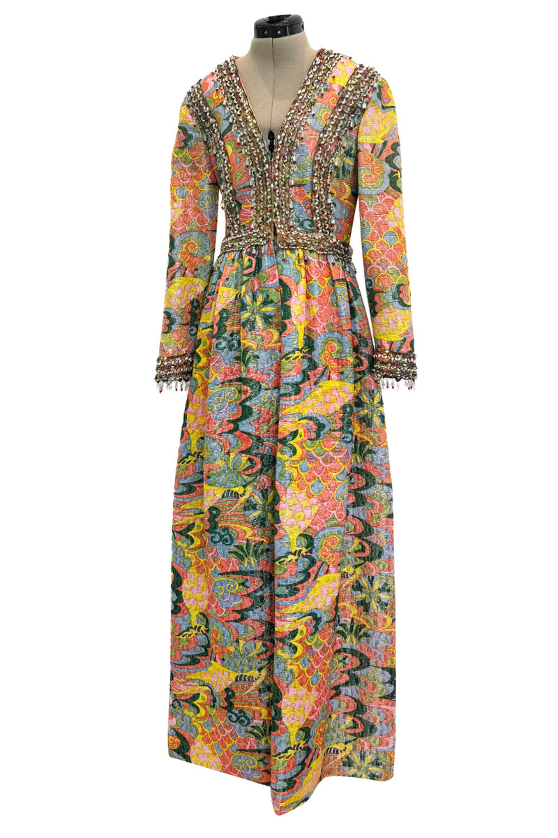 Wonderful 1968 Oscar de la Renta Gold Metallic Thread Silk Brocade Dress w Extensive Beadwork