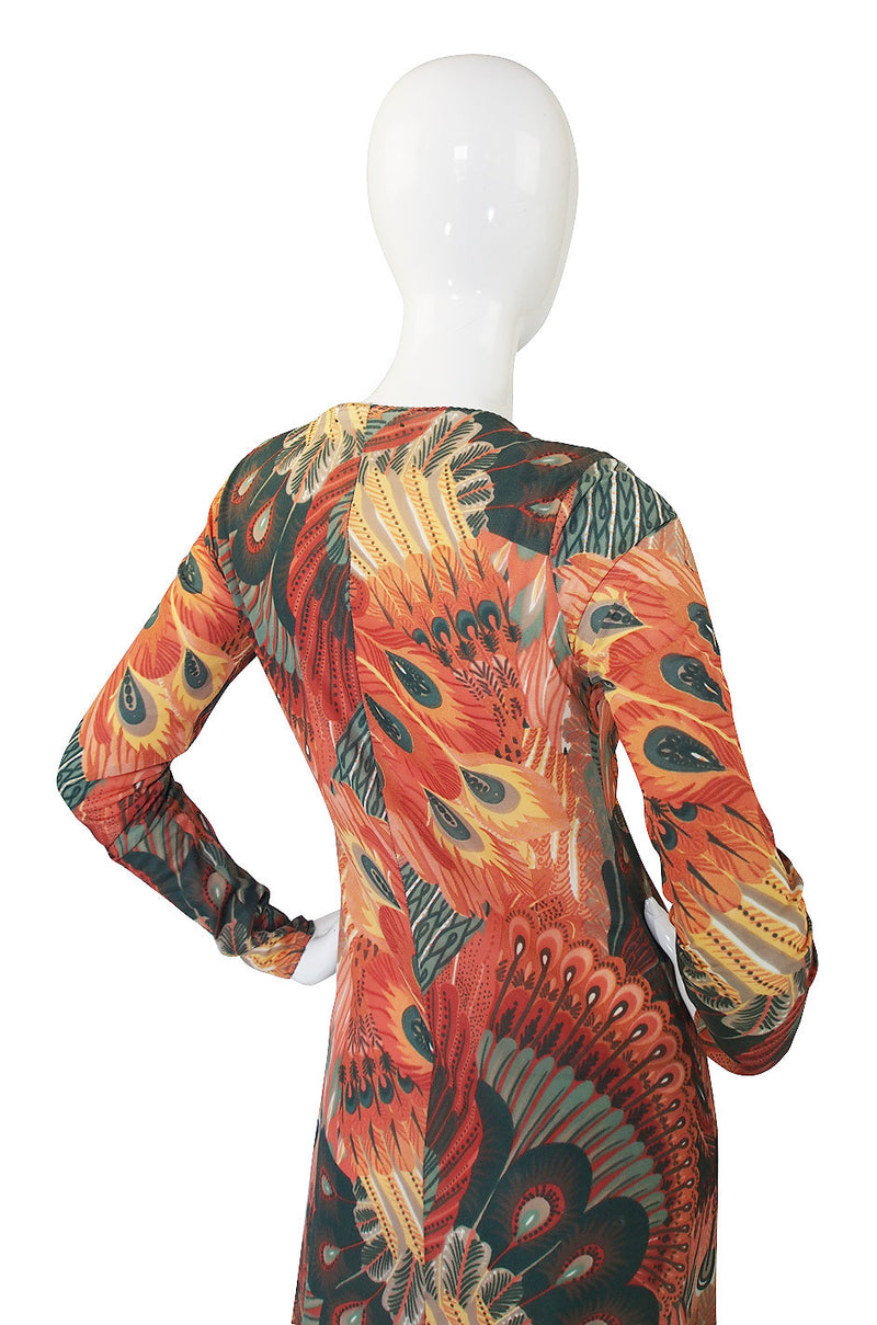 1970s John Kloss Feather Printed Nylon Maxi Dress