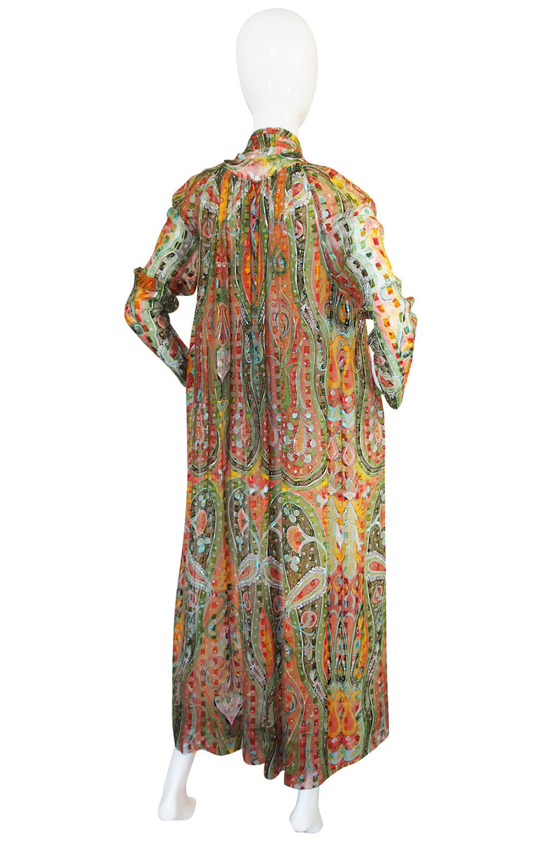 1970s Silk Chiffon Pauline Trigere Caftan Dress