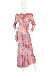 1980s Spiral Bias Cut Pink Silk Metallic Judy Hornby Dress