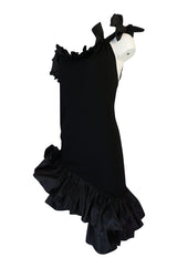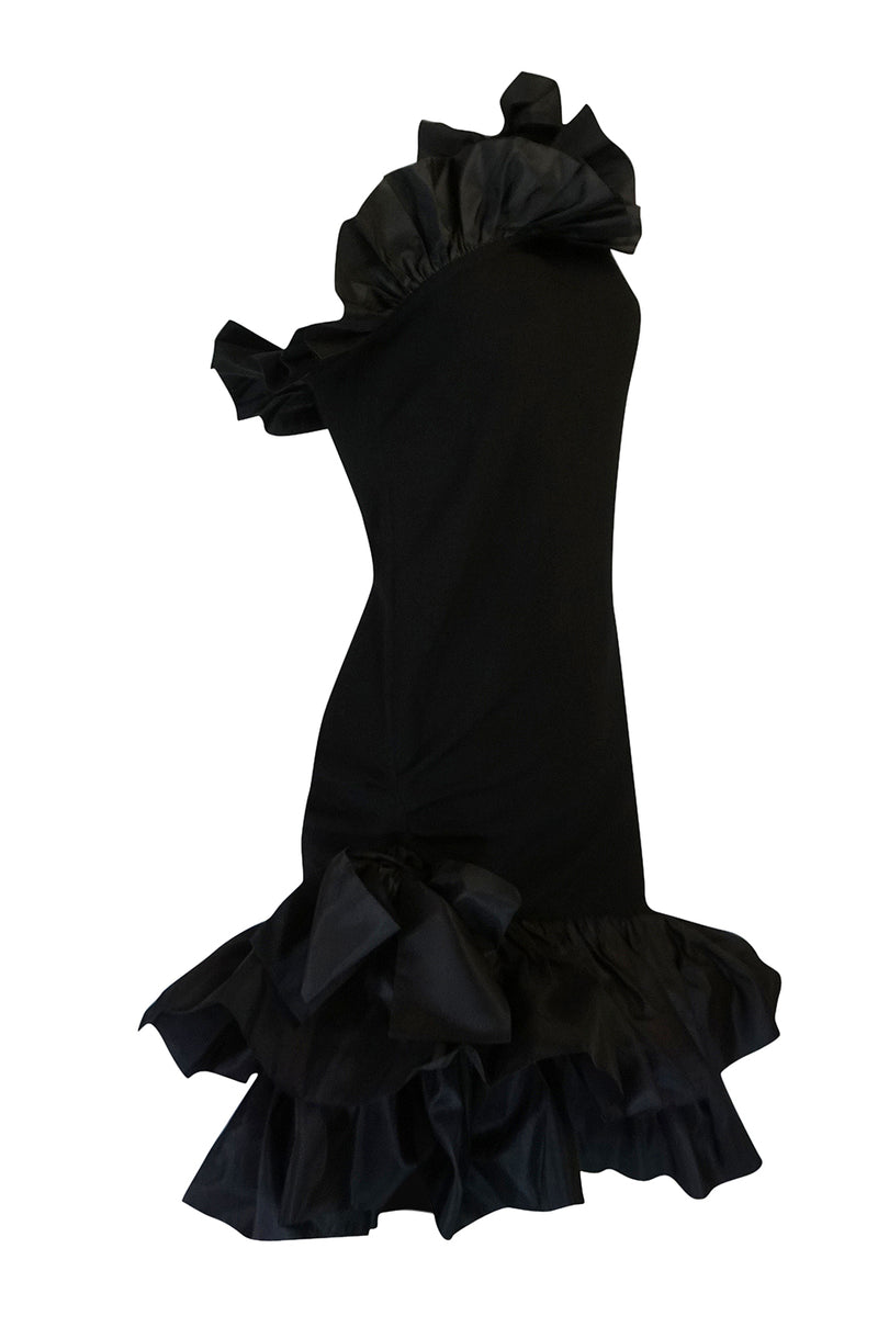 Fall 1982 Yves Saint Laurent Black Ruffled One Shoulder Dress