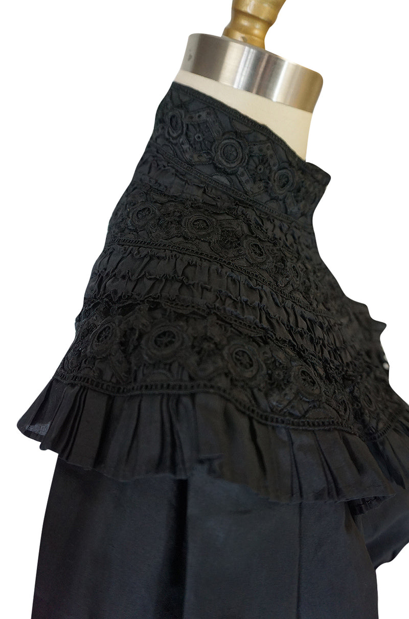 Exceptional Victorian Black Silk & Handmade Lace Top