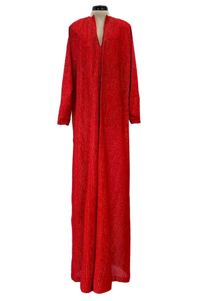 Fabulous 1970s Halston Metallic Red Lame Lurex Full Length Caftan Dress