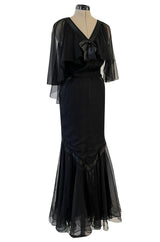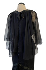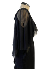 First RTW Collection Fall 1983 Chanel by Karl Lagerfeld Black Caped Bodice Silk Chiffon Dress