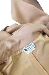 Fully lined in a matching colored silk. Buttons to close at the front with decorative buttons at the back. Hand finished throughout. The color is a more true camel in person. There is very minor chipping to the buttons edges at the back (please see photo after the label shot), but otherwise looks to have been worn very little, if at all. The easy cut will fit a variety of sizes. Tagged a Courreges B