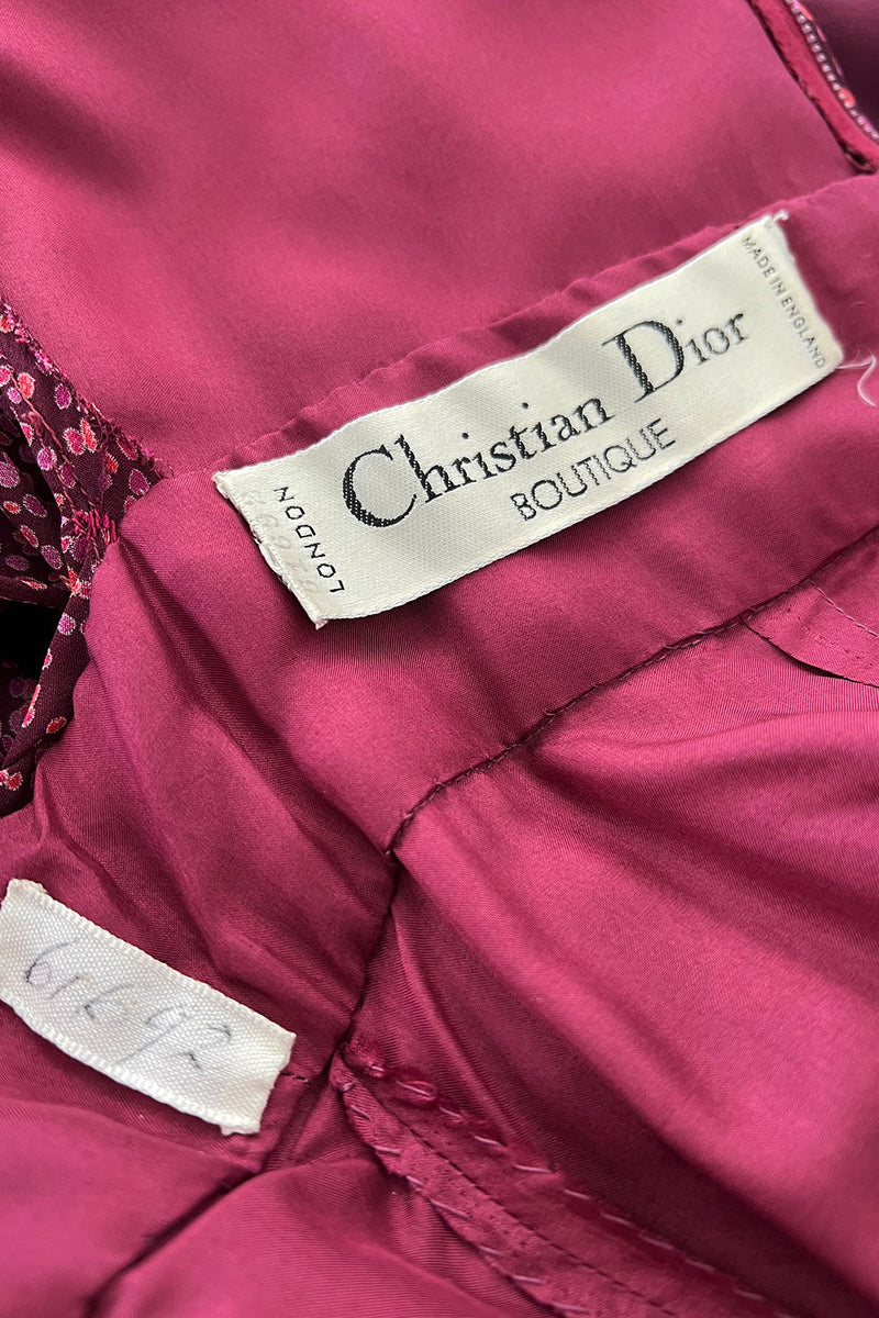 Incredible 1969-1972 Christian Dior by Marc Bohan Demi-Couture Numbered Silk Chiffon Burgundy Dress