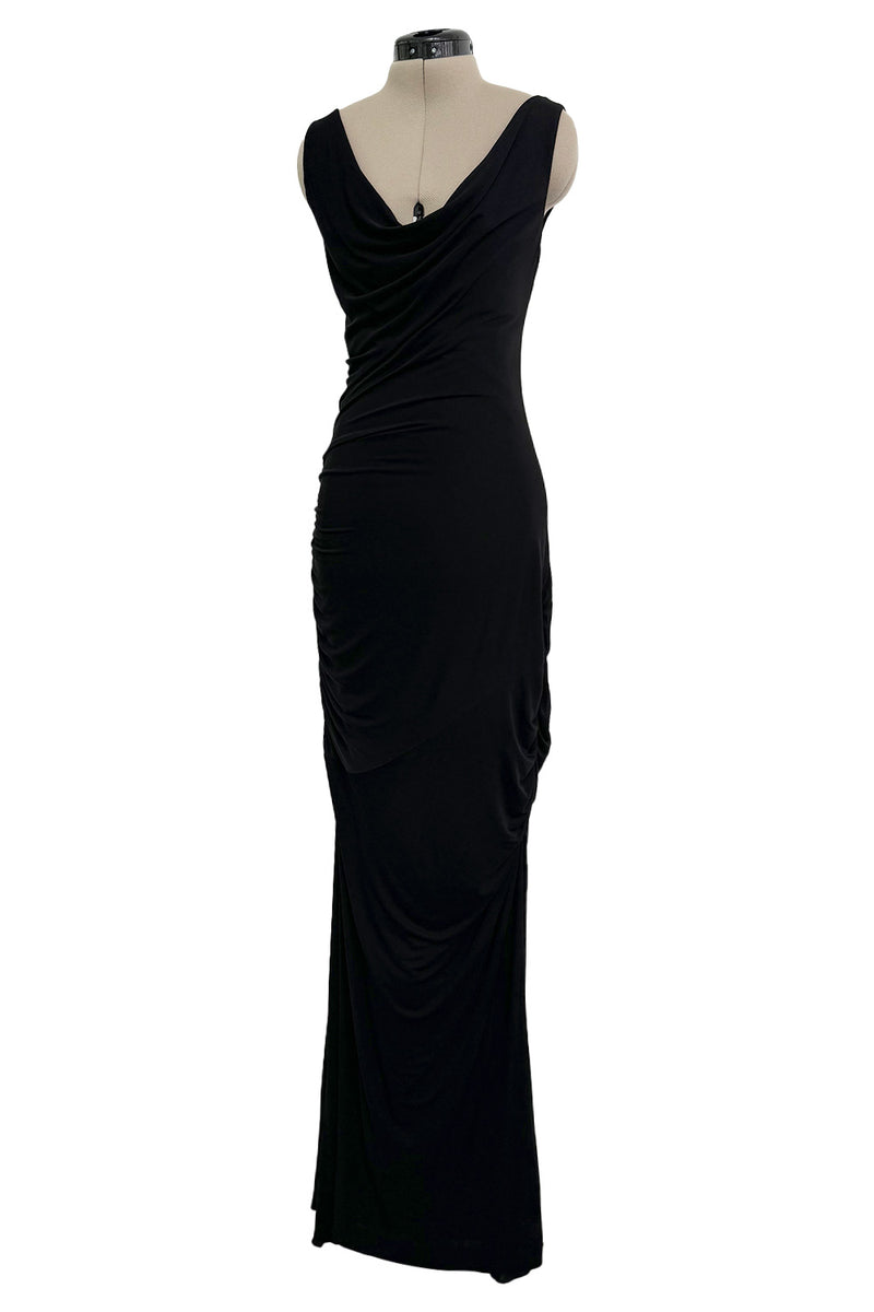 Minimlist Fall 2001 Gucci by Tom Ford Black Stretch Jersey Dress w Draped Neckline & Gathered Sides