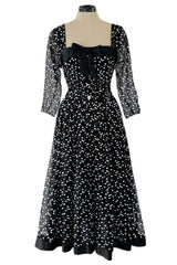 Prettiest Fall 1979 Christian Dior by Marc Bohan Black Silk Lace Net Dress w White Sequins & Bows