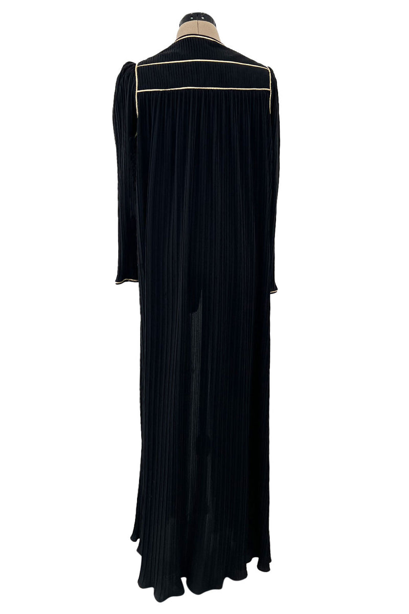 Versatile 1981 Bill Tice Full Length Black Pleated Jersey Coat w Gold Cord Detailing